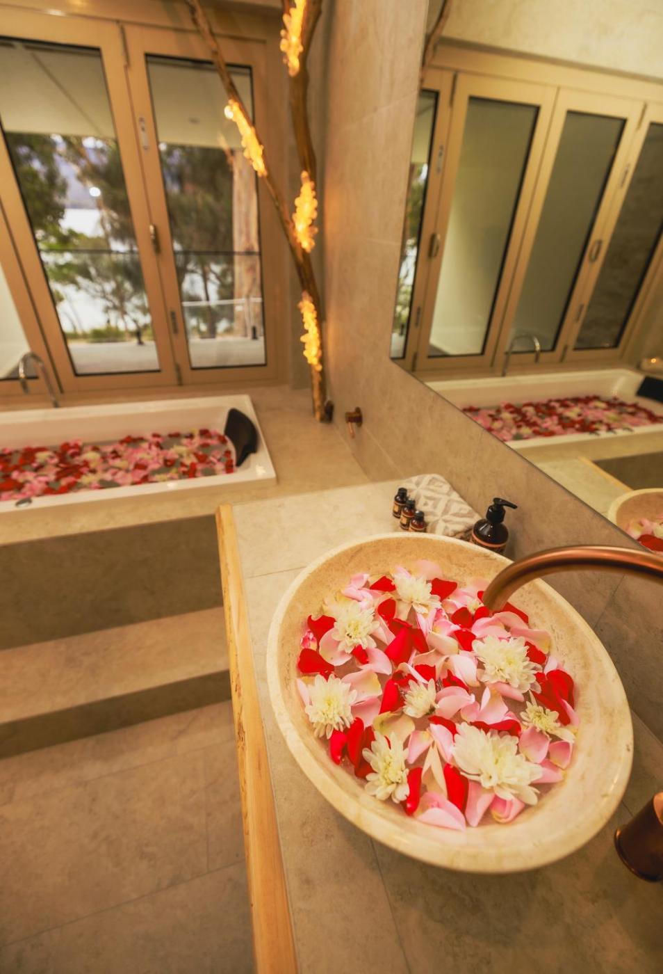 One-Bedroom Villa. This villa features a hot tub and a fireplace. This villa features 1 living room, 1 separate bedroom and 1 bathroom with a bath and free toiletries. Guests will find a stovetop, a refrigerator, a dishwasher and a microwave in the well-fitted kitchen. The villa also comes with a barbecue. The unit has a washing machine, sea views, a terrace and winechampagne is offered for guests. The unit has 2 beds.