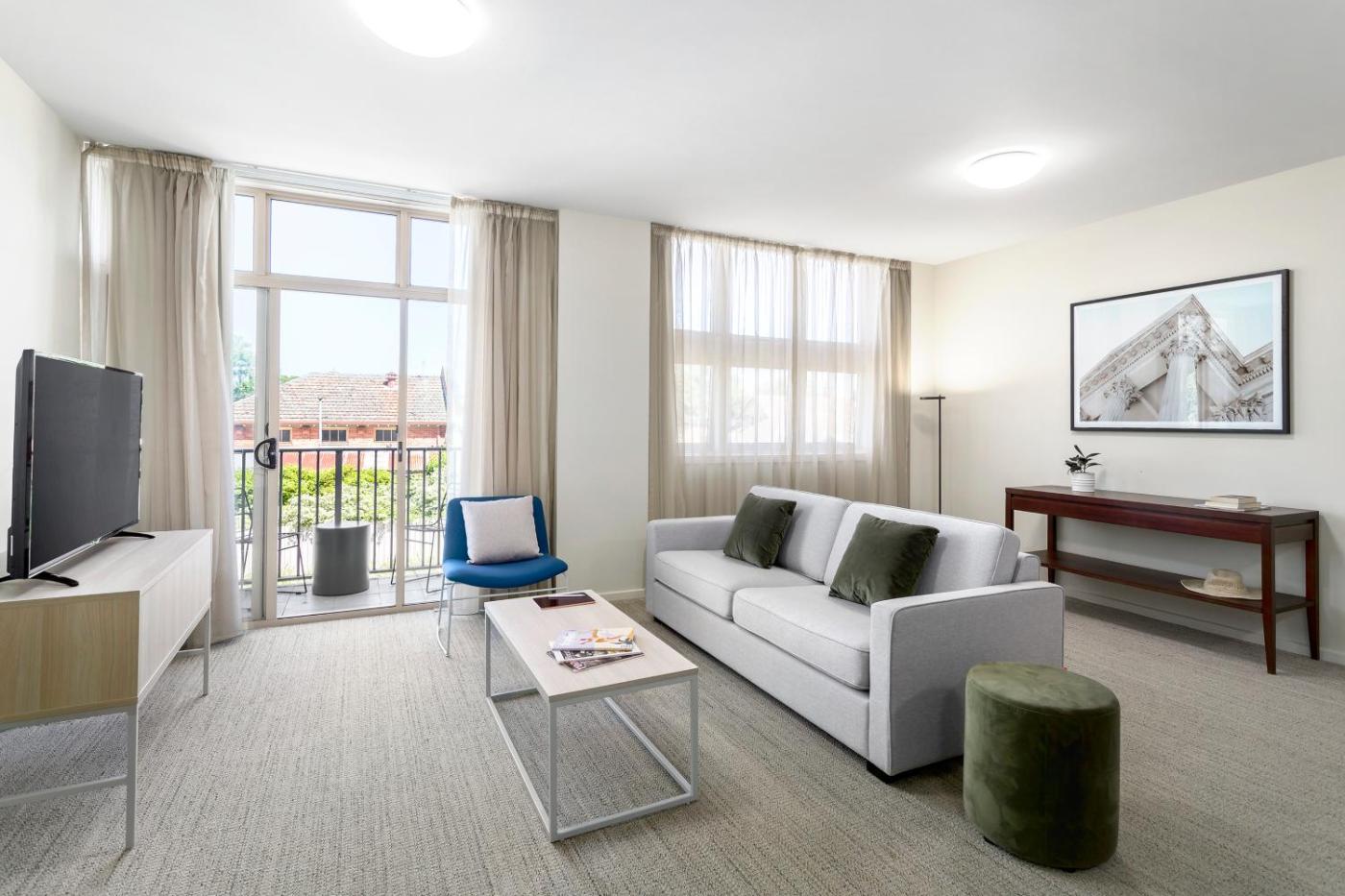 Executive Two-Bedroom Apartment. This is an interconnecting unit, made up of a studio room and an one-bedroom apartment. Features a full kitchen, laundry facilities and a lounge area with a flat-screen TV. Please note that the price is based on 4 guests. Maximum occupancy is 5 (see Hotel Policies). Please note that the Quest Ballarat isacross 3 storeys and does not have an elevator. access to second and third floor apartments are via stairs only. If you require a ground floor apartment, please request this when booking.