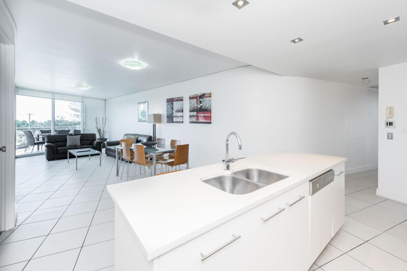 Two-Bedroom Apartment. This air-conditioned apartment features a double spa bath and a private balcony with ocean views. It also has full kitchen and laundry facilities and a living room with a flat-screen TV and DVD player. There is no capacity for extra guests. Some rooms have partial Ocean View. ;