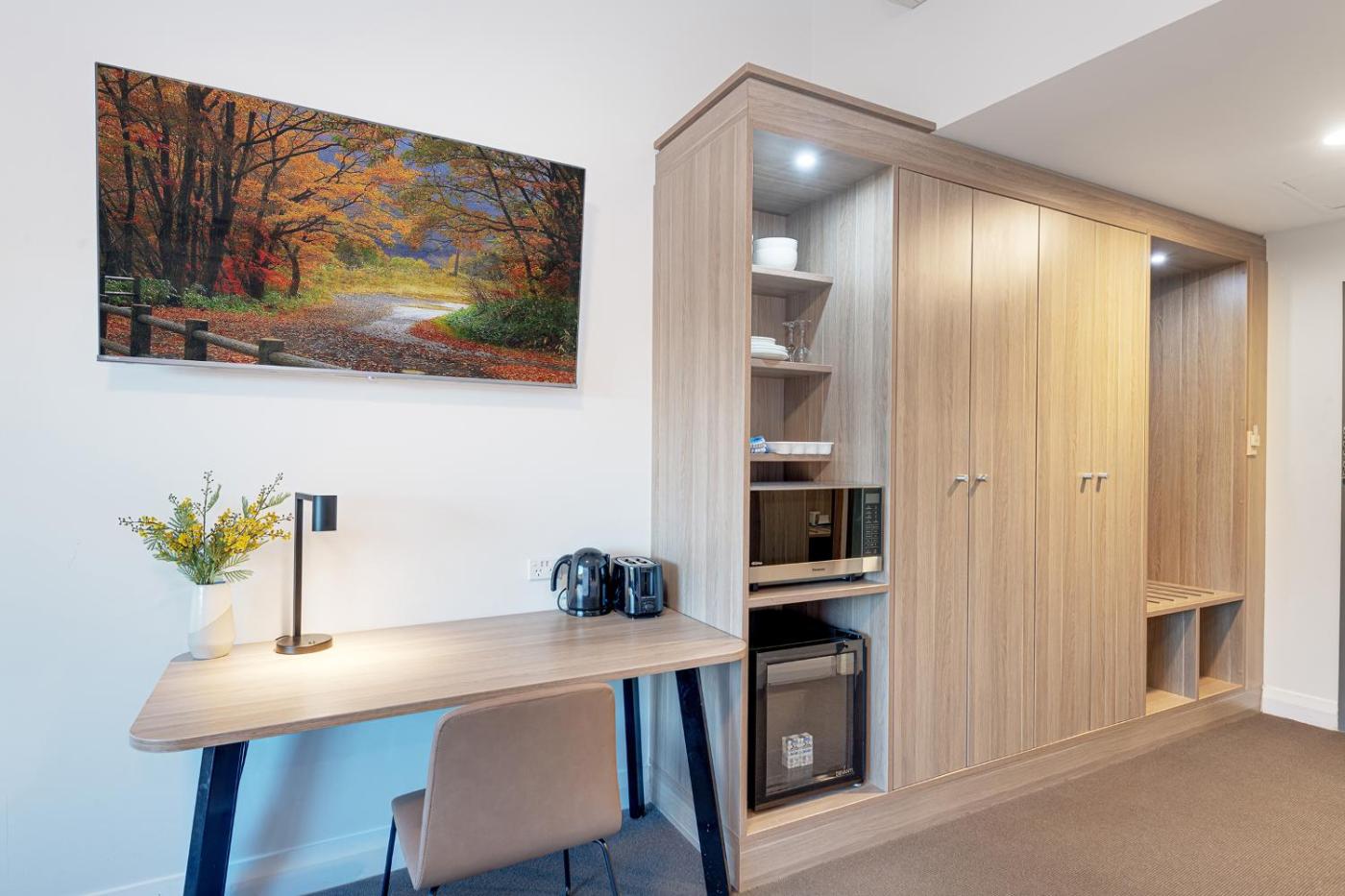 Deluxe King Room. The spacious double room features air conditioning, a seating area, as well as a private bathroom boasting a shower and a hairdryer. The double room provides a wardrobe, an electric kettle, a carpeted floor, heating, as well as a TV. The unit has 1 bed. ;