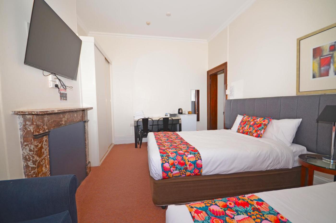 The suites have kitchenettes.rooms have a large flat-screen HD TV. The Standard rooms and Suites have en suite bathrooms. The Suites and King rooms have new reverse-cycle air-conditioners installed in November, 2017.
