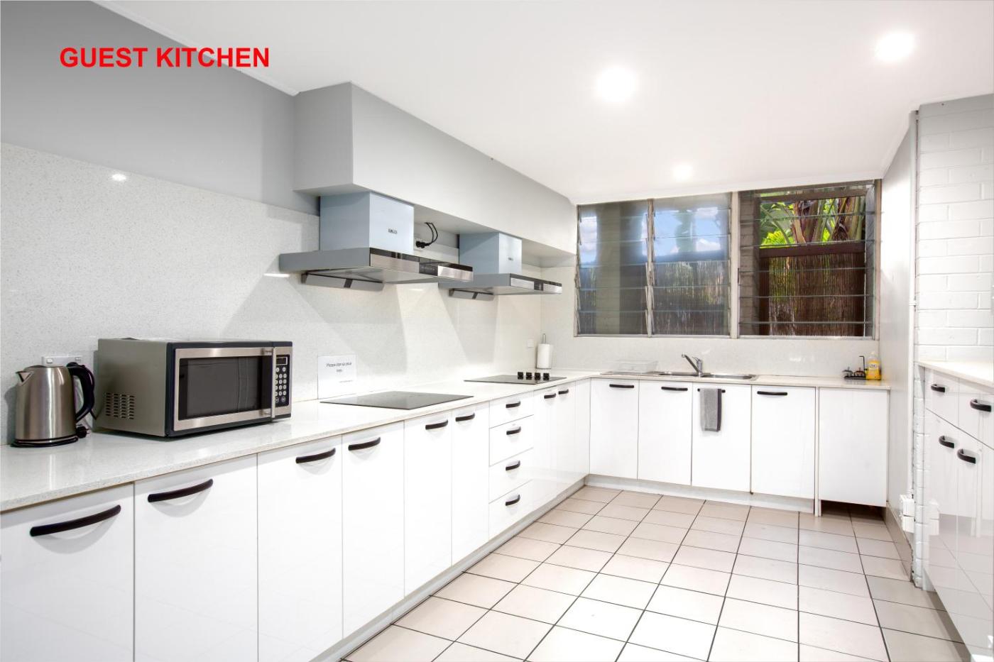 The air-conditioned rooms are modern in style. Amenities include a TV, a mini refrigerator, and tea and coffee facilities. There is also a communal kitchen available for guests use.