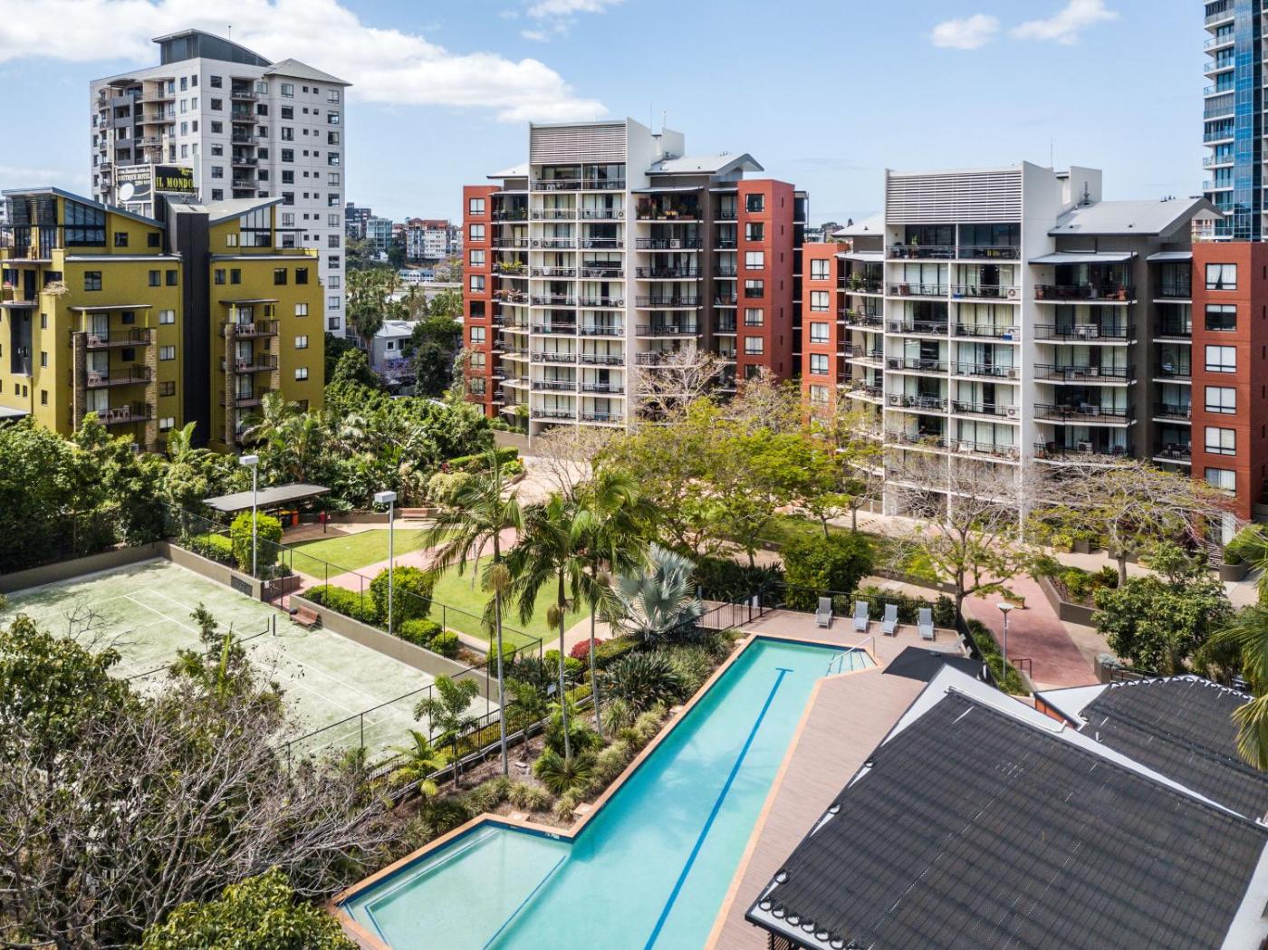 Facilities include a fitness centre, a 25-metre heated lap pool, spa pool, sauna and full-size floodlit tennis court.