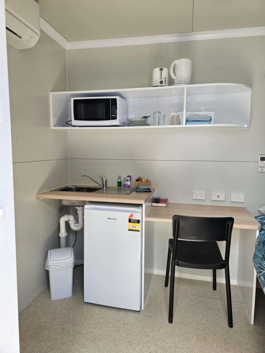 Compact Queen Van Room. The double room offers air conditioning and a private entrance, as well as a private bathroom featuring a walk-in shower. In the fully equipped kitchenette, guests will find a refrigerator, kitchenware, a microwave and a toaster. This double room features an electric kettle, heating, flat-screen TV, as well as chocolate for guests. The unit offers 1 bed.