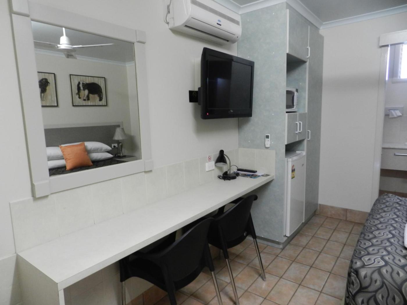 Deluxe Queen Room. This air-conditioned non-smoking room features 1 queen bed. It includes a flat-screen TV, a microwave, a toaster, a fridge and teacoffee making facilities. Guests have access to free laundry facilities and kitchenware is supplied on request. The ensuite bathroom has a shower and a wall-mounted hairdryer. ;