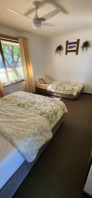 Holiday Home. This holiday home has a fully equipped kitchen and a secure back yard. There is a bathroom and a separate toilet. The bedrooms areprovided with pillows, a mattress protector, quilt and blankets.