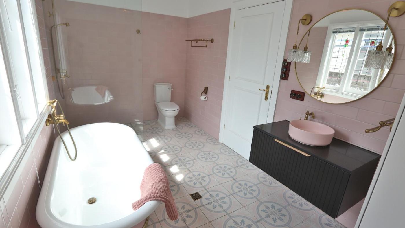Three-Bedroom House. The fireplace is the standout feature of this holiday home. The air-conditioned holiday home has 3 bedrooms and 2 bathrooms with a bath and a shower. Guests will find a stovetop, a refrigerator, a dishwasher and an oven in the well-equipped kitchen. The holiday home also features a barbecue. Boasting a balcony with garden views, this holiday home also offers a washing machine and a flat-screen TV with streaming services. The unit has 4 beds.