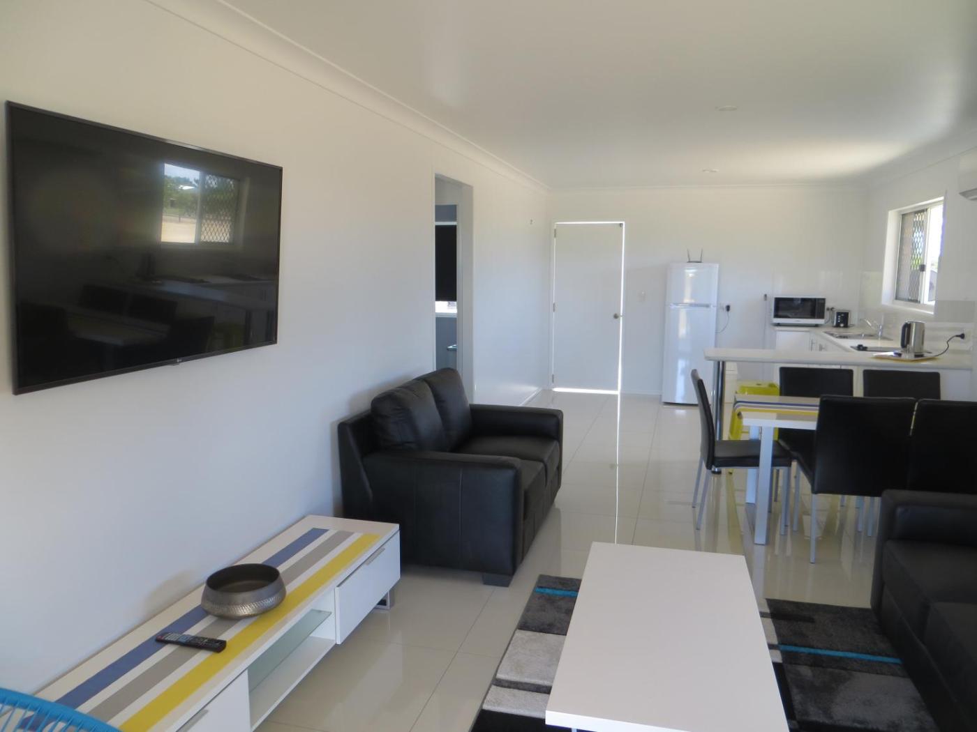 Two-Bedroom Apartment. This apartment has a seating area, electric kettle and stovetop. Also included is a well equipped kitchen, dining table for 6, large flat screen TV and an additional TV in parents room. Maximum occupancy is 4 adults and 2 children (15 years and under) on bunk beds.