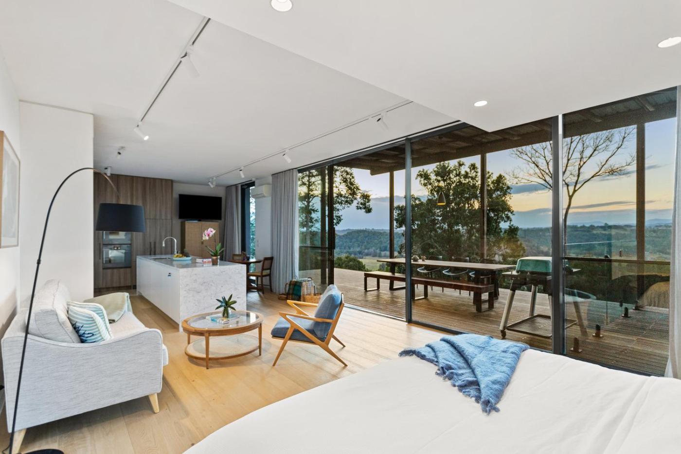 Byron Hinterland Villas is located in the beautiful Byron Hinterland of NSW, and features stunning rural views over cattle pastures and nearby national park. Local cafe nearby for your morning coffee and breakfast.