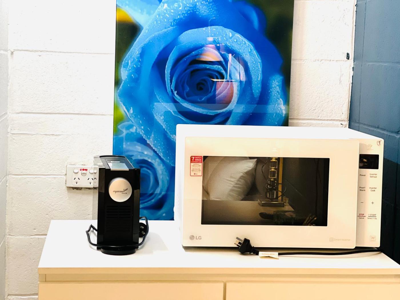 Executive Queen Room with Kitchenette - Not Pet Friendly. This spacious air-conditioned room features a LCD TV. It offers tea and coffee making facilities, a hairdryer and iron. There is a kitchenette with a microwave. Situated on the ground floor, parking is available at the door. Free espresso coffee and hot chocolate are offered on check-in and check-out at reception during office hours. Complimentary welcoming drink is available at reception during office hours. Please note that pets cannot be accommodated in this room. If evidence of pets are found, an additional fee will apply. ;