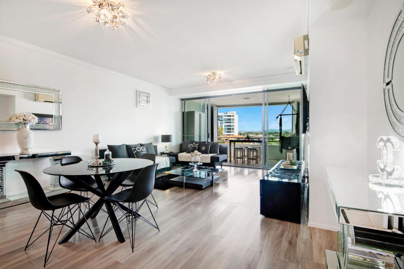 Featuring a sauna, Couture Comfort - Luxe Chanel Themed Apartment is located in Gold Coast. This beachfront property offers access to a balcony, free private parking and free WiFi. The property features a year-round outdoor pool, sauna, hot tub and garden.