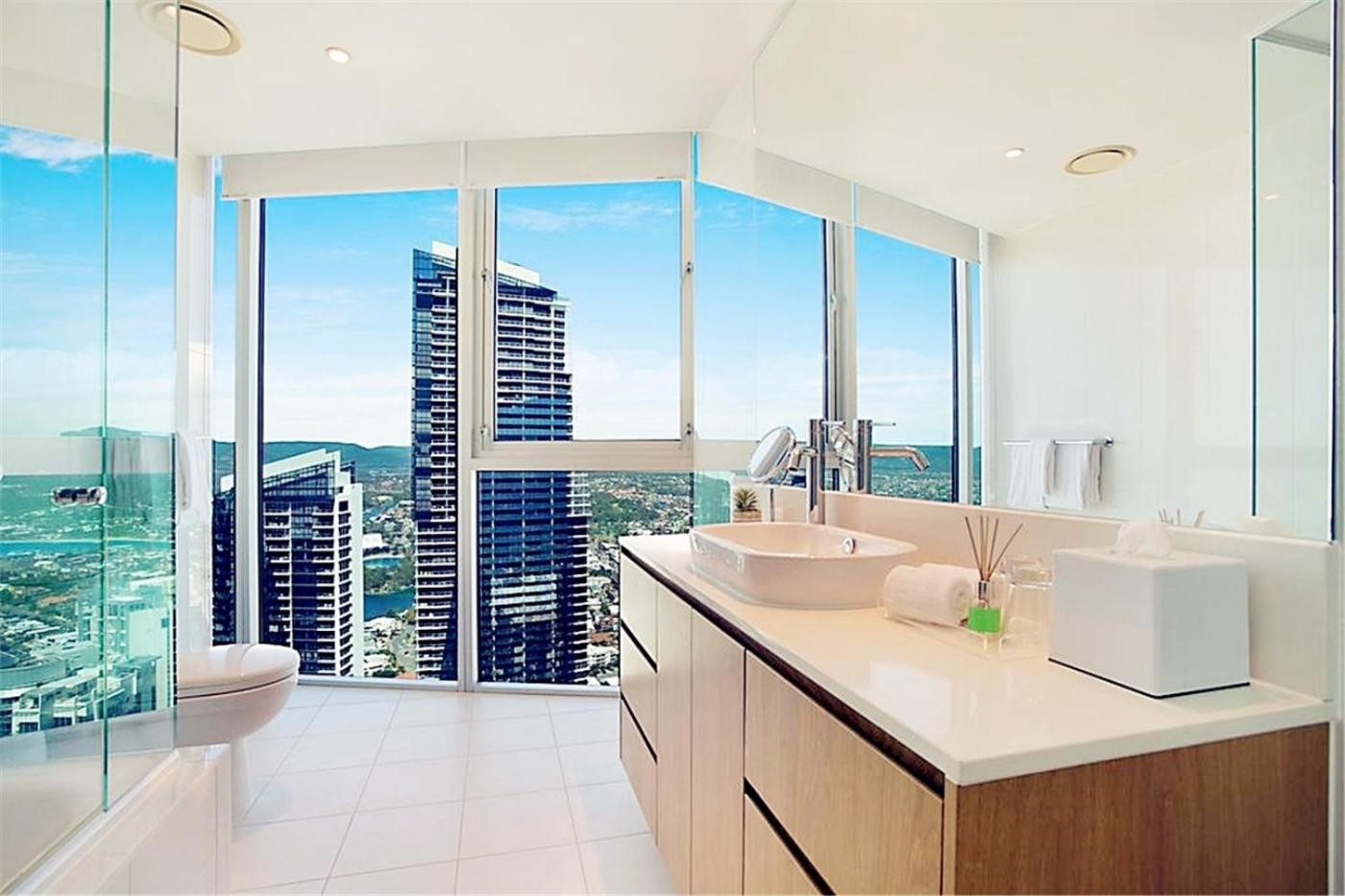 Luxury Two-Bedroom Apartment with Ocean Views. This apartment is located between the 31st and 46th floors and offers ocean and river views from the balcony. There is a super-king size bed in the main bedroom and a double bed and a single bed in the second bedroom. It is fully furnished. ;