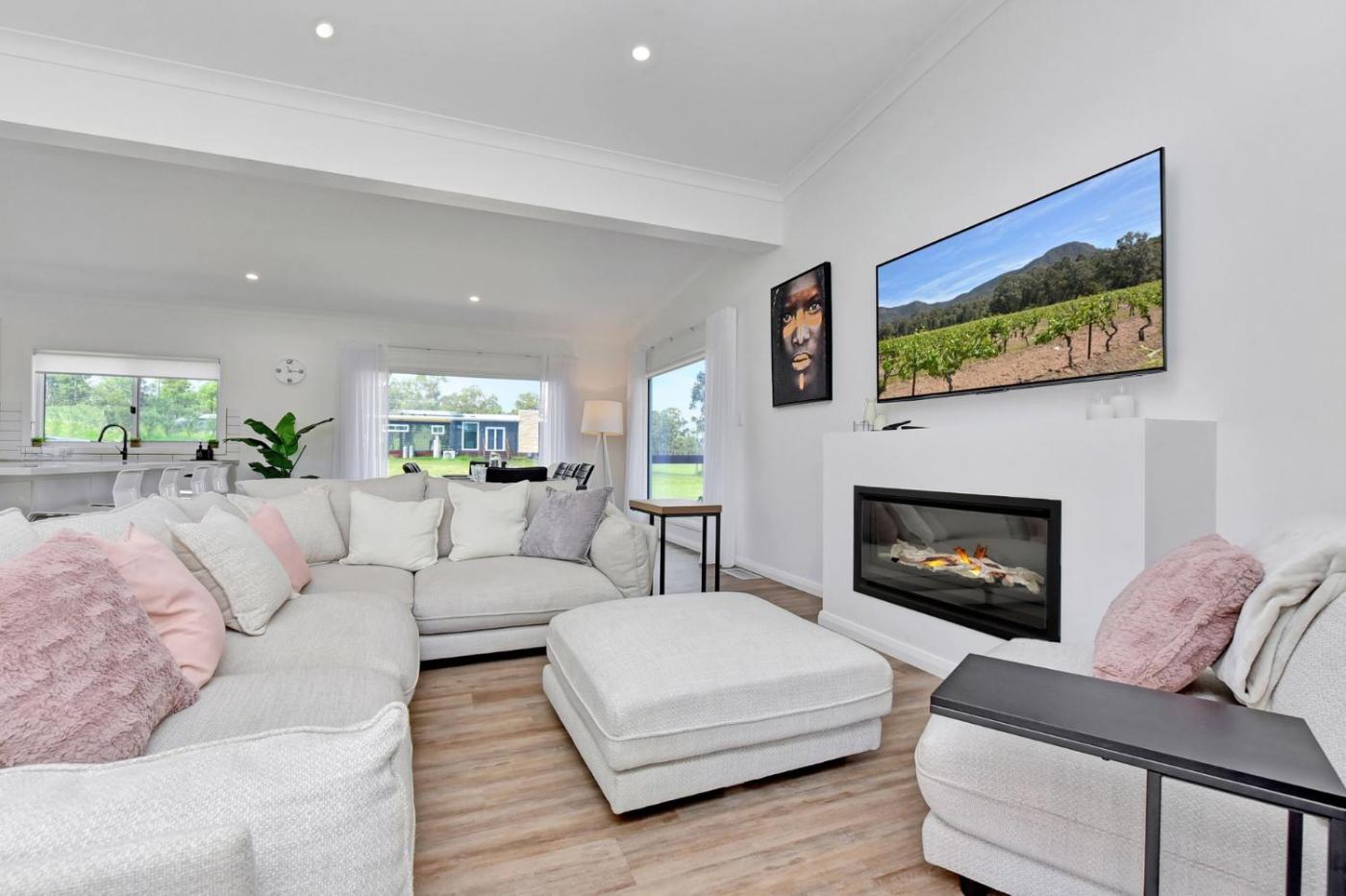 Set in Greta, 11 km from Hunter Valley Gardens, Magpie Three- Two for Joy Estate. 2.5 Bathrooms sleeping 6 offers air-conditioned accommodation with a terrace and free WiFi. Guests staying at this holiday home have access to a patio.
