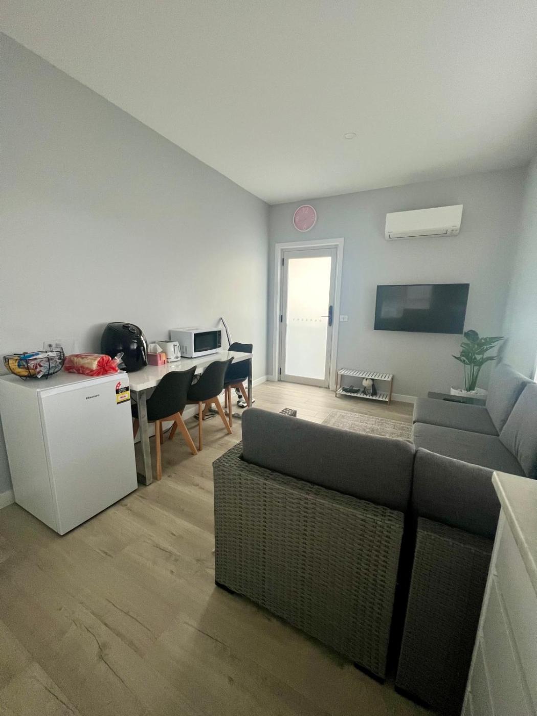 Queen Studio. Featuring free toiletries, this studio includes a private bathroom with a shower and a hairdryer. In the well-equipped kitchenette, guests will find a refrigerator, kitchenware, a microwave and a toaster. The air-conditioned studio features a flat-screen TV with streaming services, a washing machine, a private entrance and a tea and coffee maker. The unit has 2 beds.
