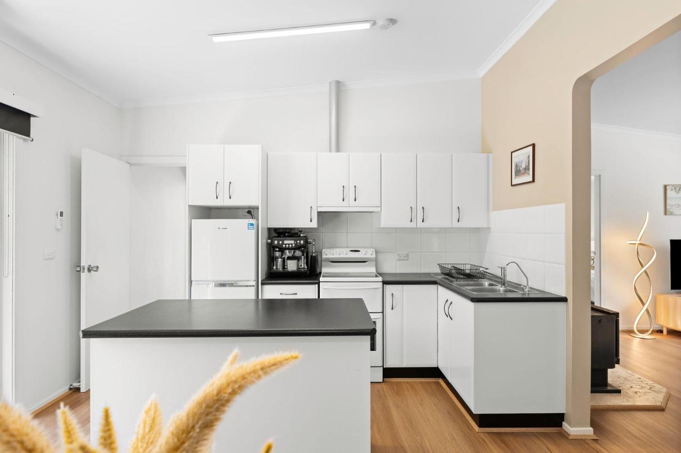 Four-Bedroom House. This holiday home features a fireplace. The air-conditioned holiday home features 4 bedrooms, 2 bathrooms with a shower and a kitchen. Guests will find a stovetop, a refrigerator, kitchenware and an oven in the well-fitted kitchen. The holiday home also provides guests with a barbecue. Featuring a patio, this holiday home also provides a washing machine, a dining area and a flat-screen TV. The unit offers 4 beds.