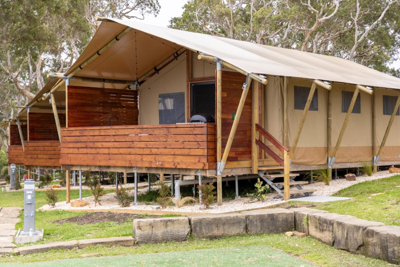 Deluxe Beach Tent - Sleeps 4. This tent is fully self-contained with indoor bathroom, microwave, electric hot plate, full size fridge, TV, DVD and Foxtel. ;