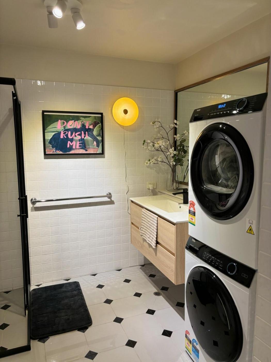 Two-Bedroom Apartment. This air-conditioned apartment comes with 1 living room, 2 separate bedrooms and 1 bathroom with a walk-in shower. Guests can make meals in the kitchen that features a stovetop, a refrigerator, a dishwasher and kitchenware. This apartment has a washing machine, flat-screen TV with streaming services, city views, as well as chocolate for guests. The unit has 3 beds.