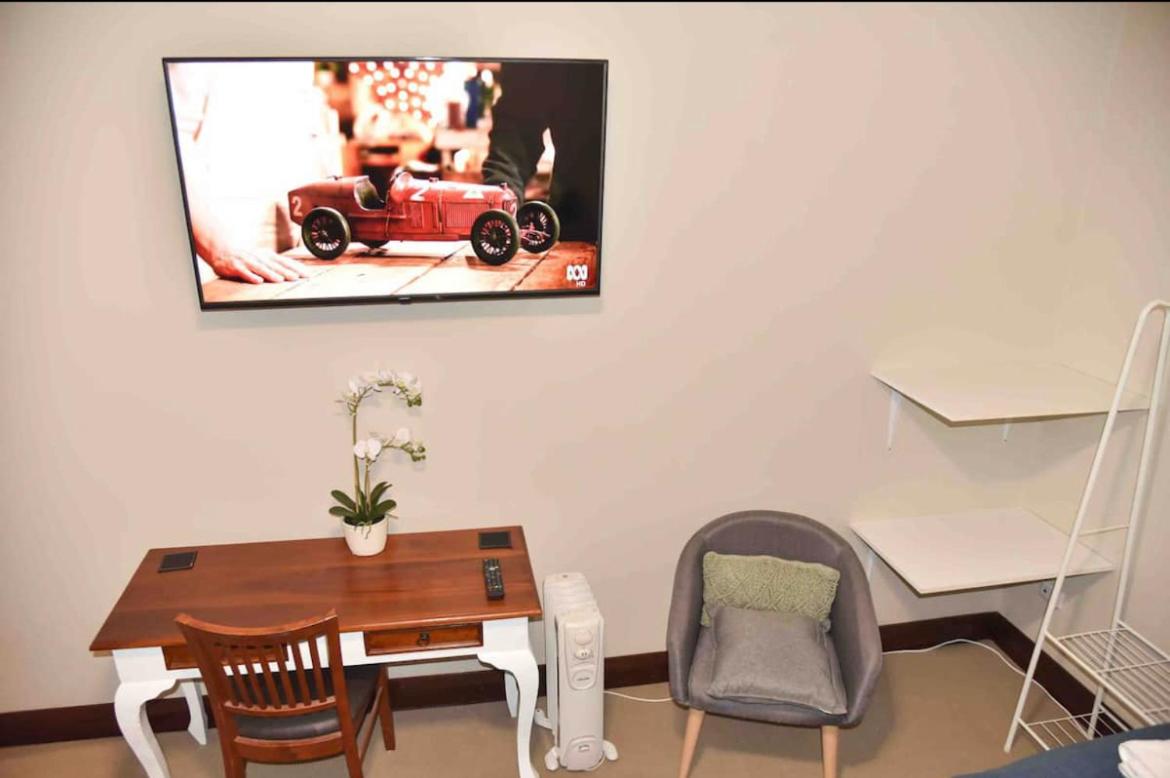 Deluxe King Room. This double room has a shared bathroom and a carpeted floor. Guests will find a stovetop, a refrigerator, kitchenware and a microwave in the fully equipped kitchenette. The double room also provides guests with a barbecue. This double room is air-conditioned and features a seating area with a flat-screen TV, a washing machine, a private entrance, a dining area, as well as an electric kettle. The unit offers 1 bed. ;