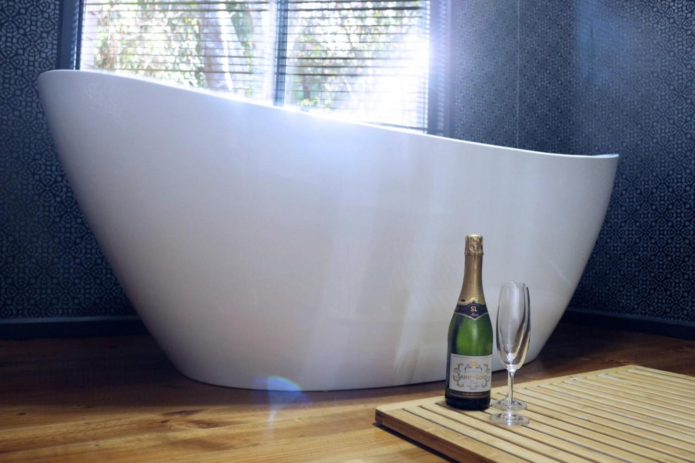 Two-Bedroom House. The hot tub and fireplace are the special features of this holiday home. This spacious holiday home comes with 1 living room, 2 separate bedrooms and 2 bathrooms with a walk-in shower and free toiletries. In the kitchen, guests will find a stovetop, a refrigerator, a dishwasher and kitchenware. This holiday home has a washing machine, flat-screen TV with streaming services, garden views, as well as winechampagne for guests. The unit has 2 beds.