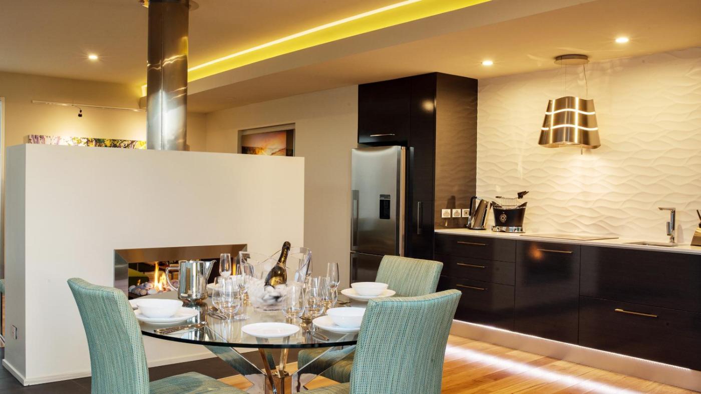 The lodge provides guests with a balcony, pool views, a seating area, a flat-screen TV, a fully equipped kitchen with a fridge and a dishwasher, and a private bathroom with shower and free toiletries. An oven, a microwave and minibar are also offered, as well as a coffee machine and a kettle.