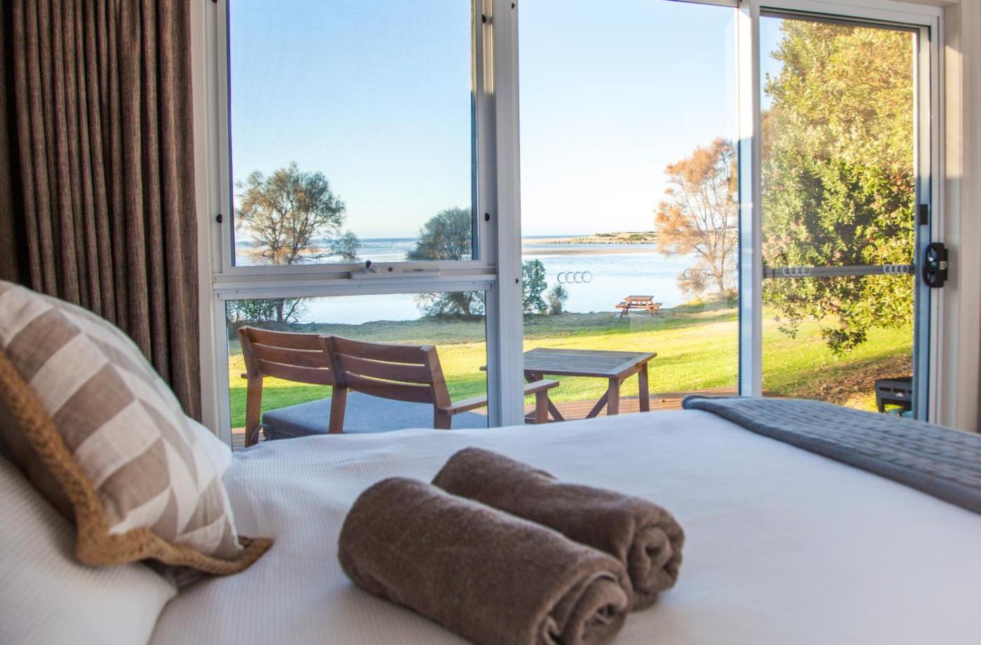 Studio with Spa Bath. This waterfront studio features a private entrance and kitchen with kitchenware and stovetop. There is a deck.
