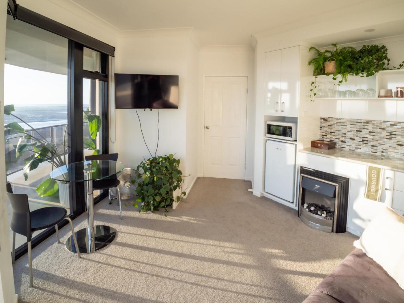 King Studio. Situated at far end of the balcony, this studio offers uninterrupted river, town views and Smart Flat screen TV in room.