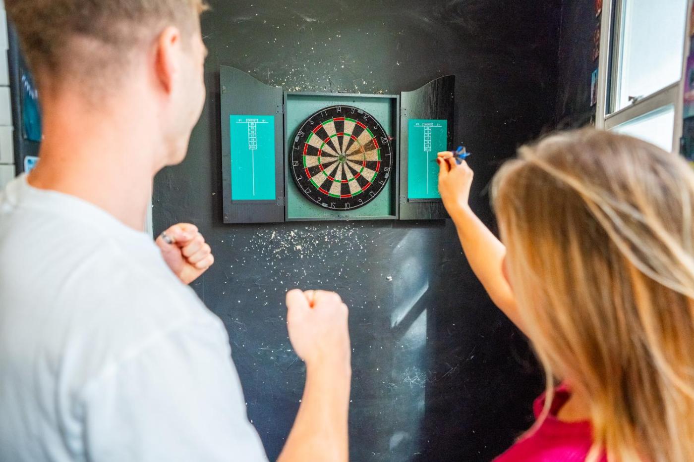 Our common areas are designed for fun and relaxation. Challenge your new mates on the arcade machine, enjoy a game of darts, or kick back in our TVgaming room. Plus, start your day right with free barista coffee available at the Happy Travels shop!